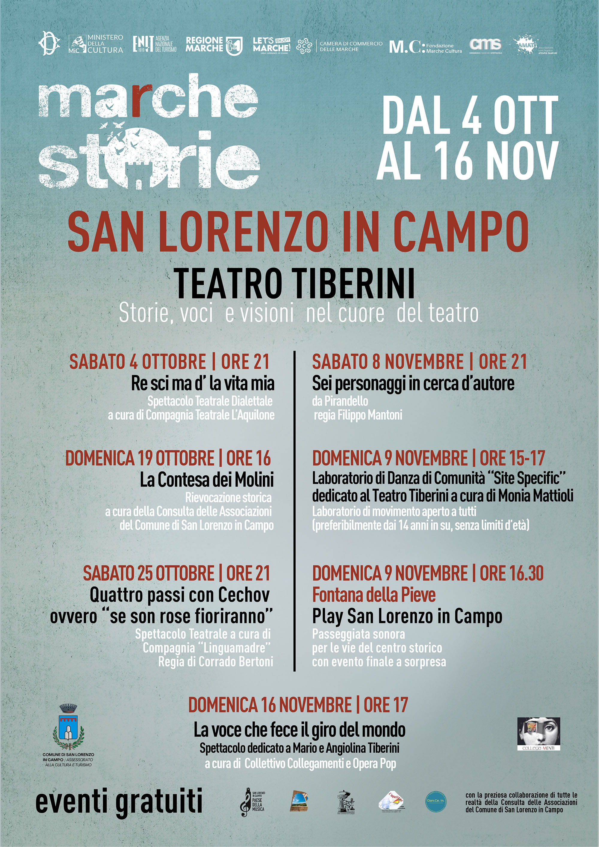 Anche quest'anno il Comune di San Lorenzo in Campo partecipa al festival regionale MArCHESTORIE, con un ricco programma di eventi culturali fra ottobre e novembre, organizzato dall'Assessorato alla Cultura e Turismo del nostro Comune, Collettivo CollegaMenti e tutte le associazioni laurentine della Consulta della Associazioni.