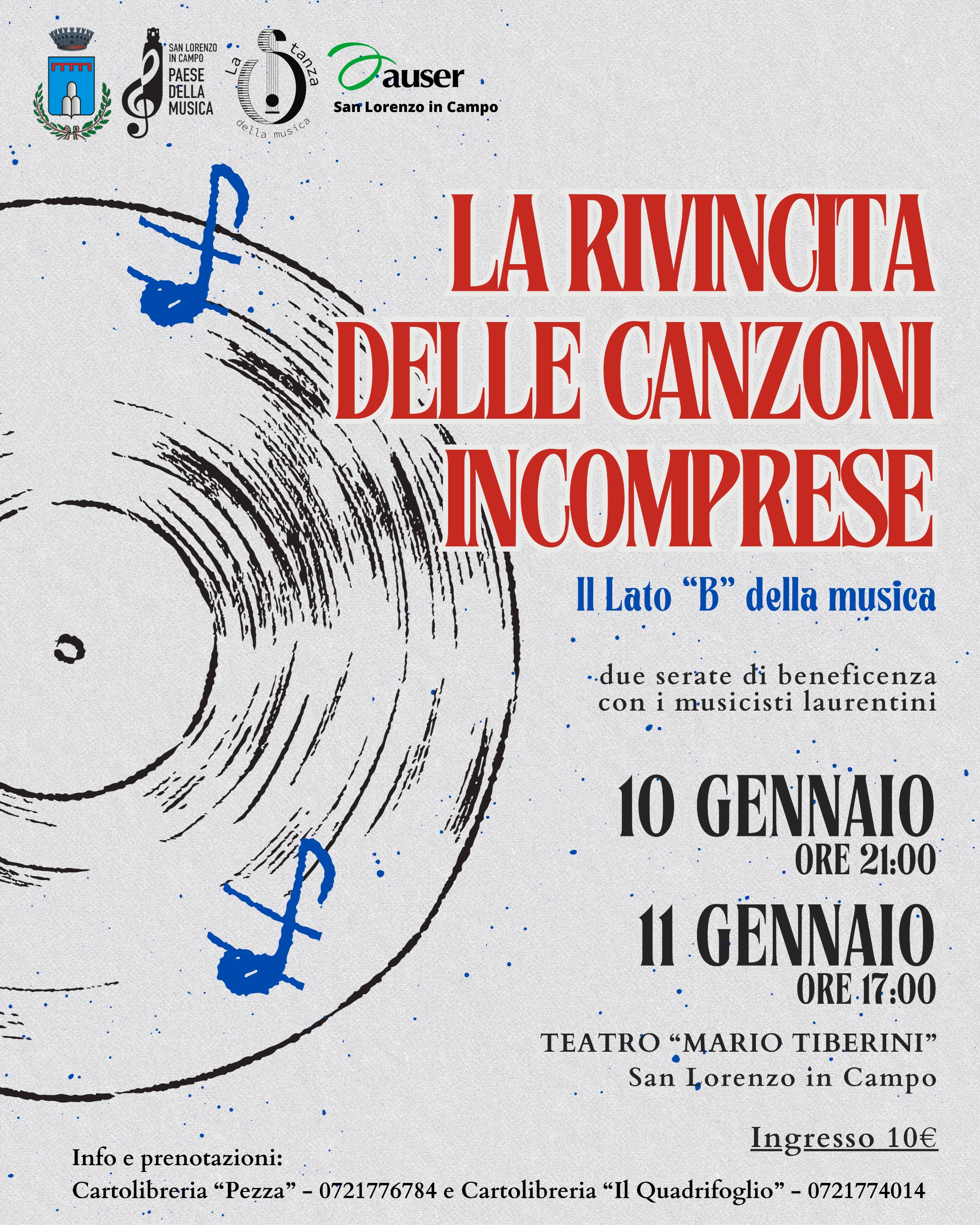 AUSER di San Lorenzo in Campo, Associazione 'La stanza della musica' e l’Amministrazione Comunale - Assessorato a Cultura e Turismo, presentano ‘La rivincita delle canzoni incomprese - Il lato B della musica'.