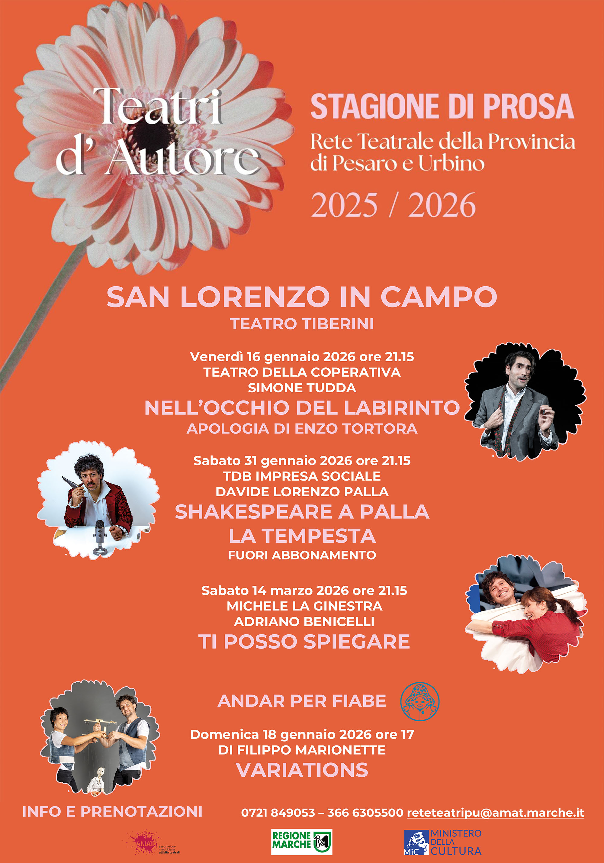 Le date degli spettacoli in collaborazione con AMAT - circuiti Teatri d'Autore, Andar per Fiabe e NEXT: