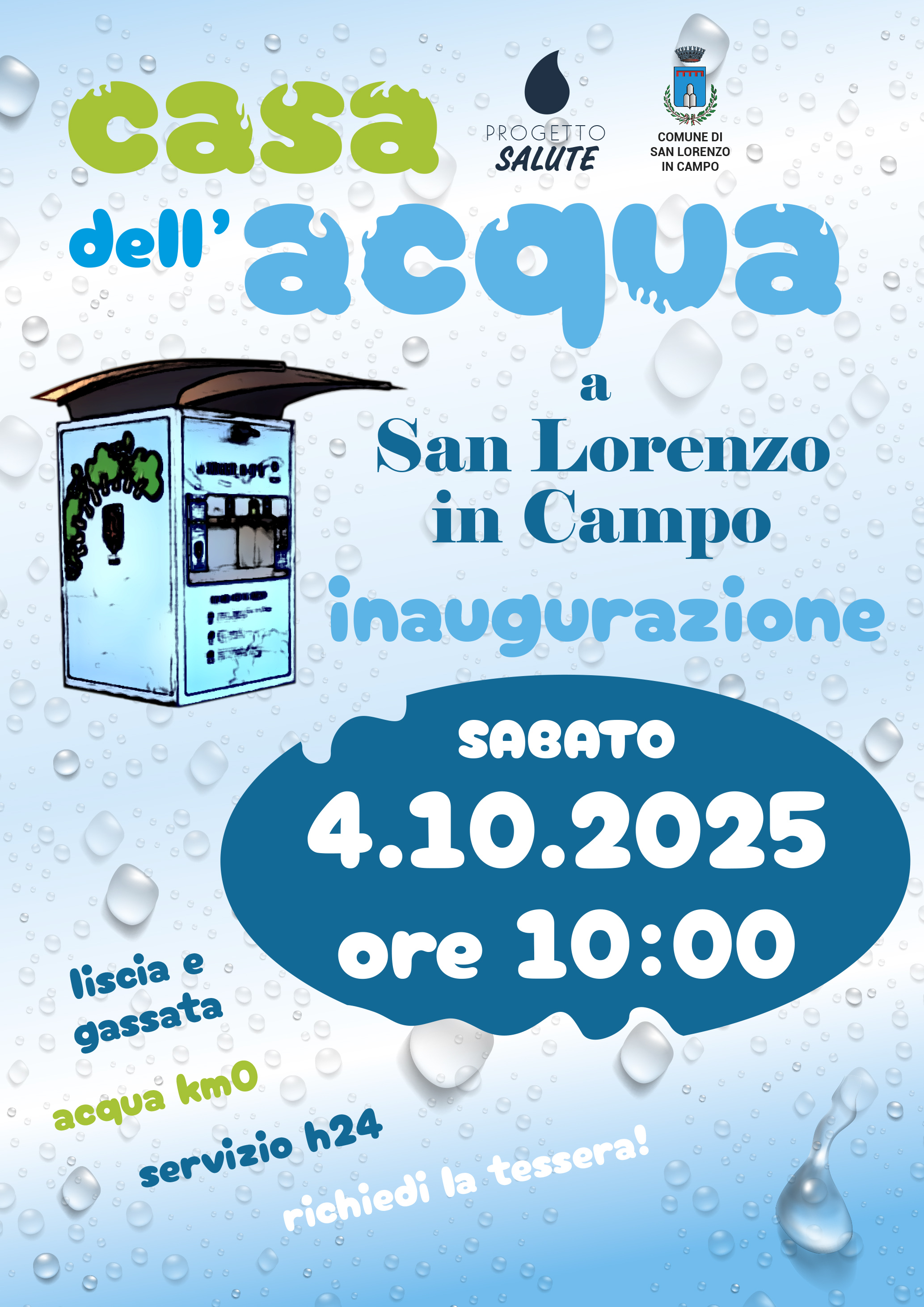 Dopo la cessione della Casetta dell'Acqua di Largo Luigi Speranzini (a fianco della Biblioteca Comunale ed Ufficio Postale) da parte del vecchio gestore al nuovo gestore, Progetto Salute di Serra de Conti (AN), siamo lieti di annunciare che sabato 4 ottobre 2025, alle ore 10, si terrà un piccolo momento inaugurale per il riavvio del servizio.